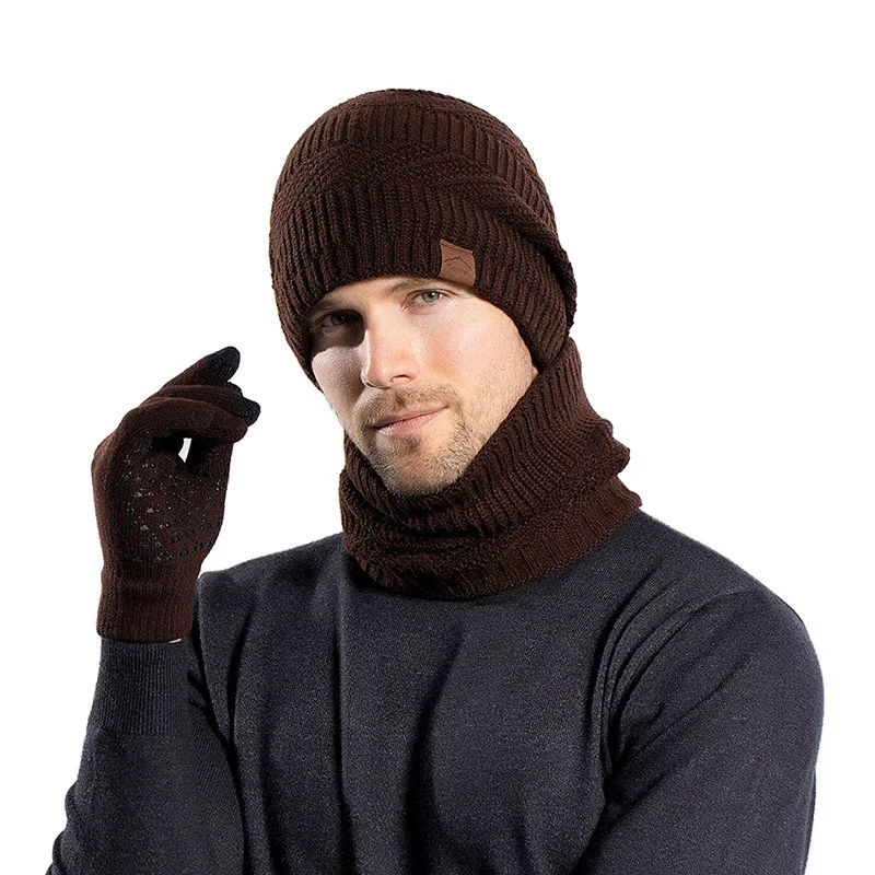 Ensemble hiver homme 3 pièces – Bonnet, écharpe et gants polaire chaud