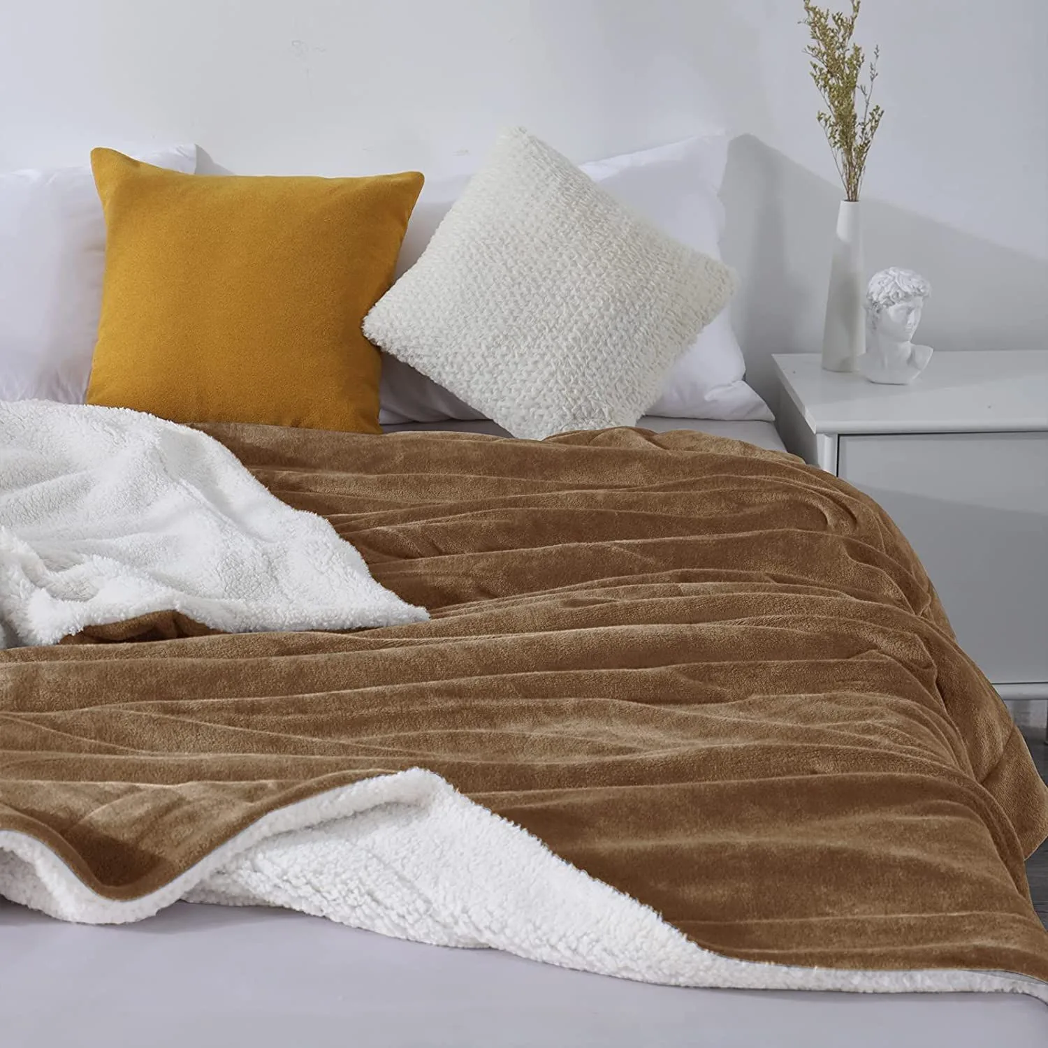 Laissez-vous séduire par Plaid Polaire « blandine » Marron Doublé Avec Fourrure Sherpa