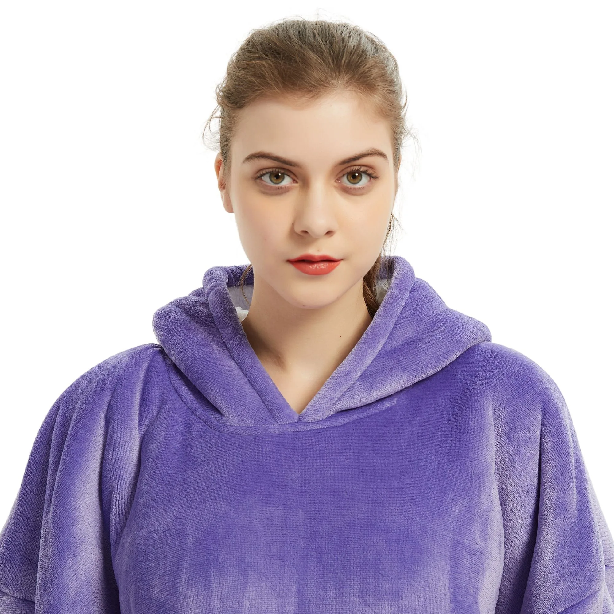 Découvrez les avantages de Pull Plaid Violet – Sweat Plaid Polaire Femme À Capuche Et Poche Centrale