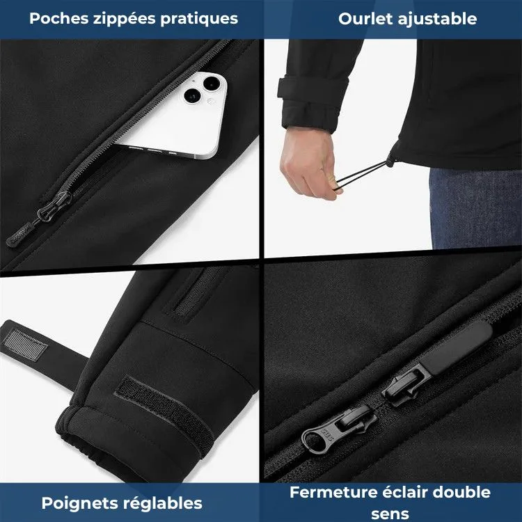 Immergez-vous dans l’hiver avec style : imaginez-vous sur un sommet enneigé ou sur un sentier pluvieux, en toute sérénité, grâce à cette veste à capuche chauffante qui vous garde au chaud.