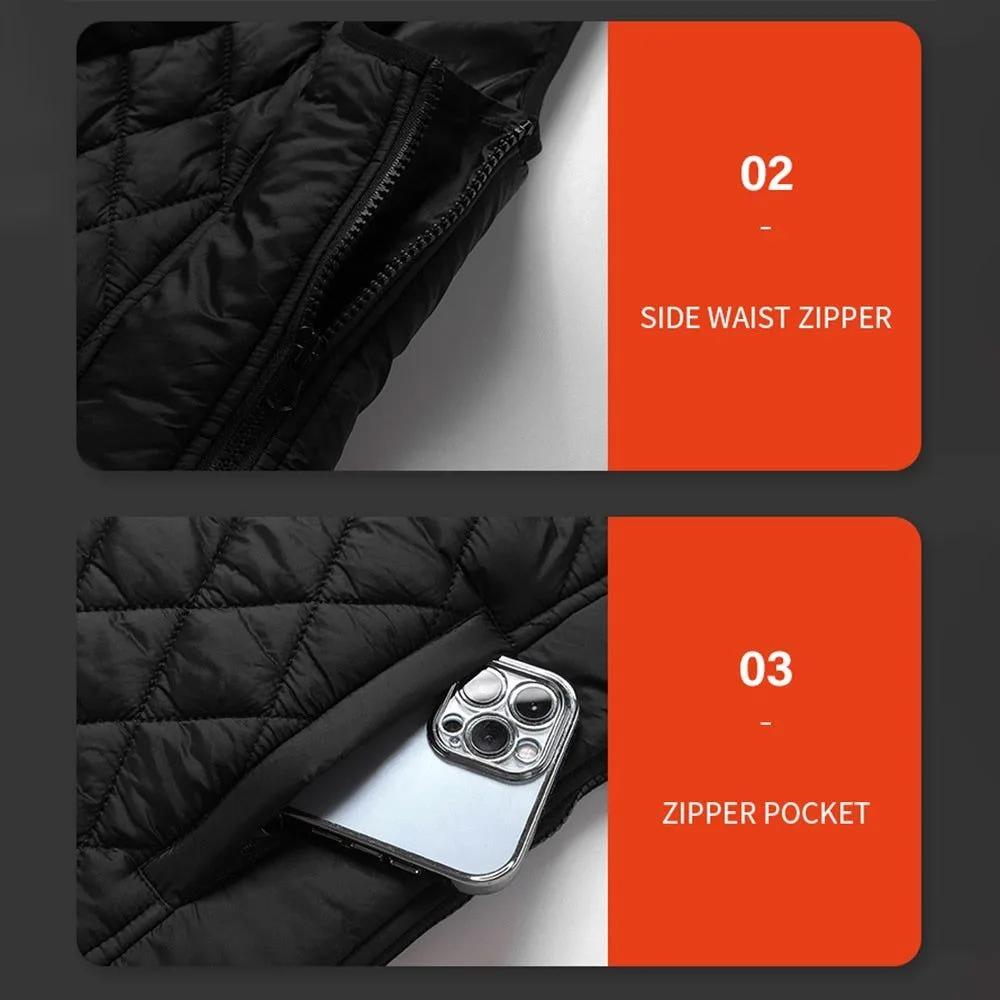 Affrontez l’hiver avec style et confort grâce à notre veste chauffante noire pour femme, un accessoire indispensable pour vous accompagner lors des journées froides. Conçue avec une technologie avancée, cette veste est dotée de 9 zones de chauffe qui assurent une couverture thermique optimale, vous gardant au chaud où que vous soyez.