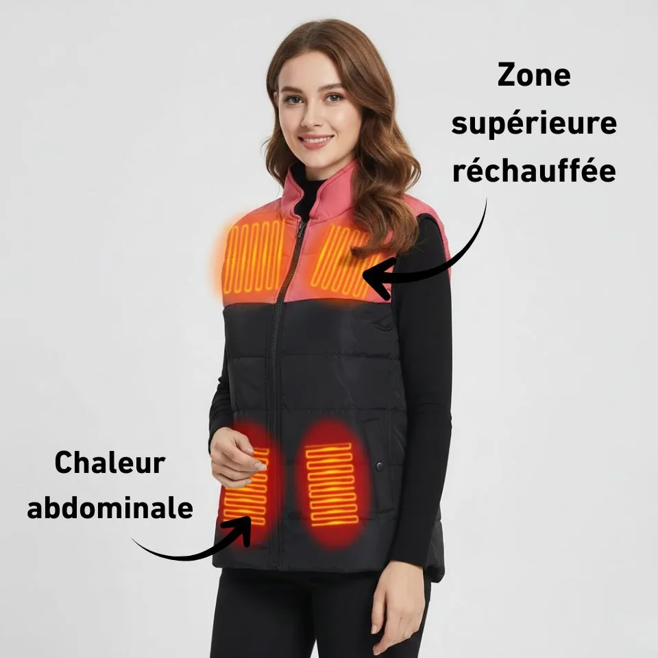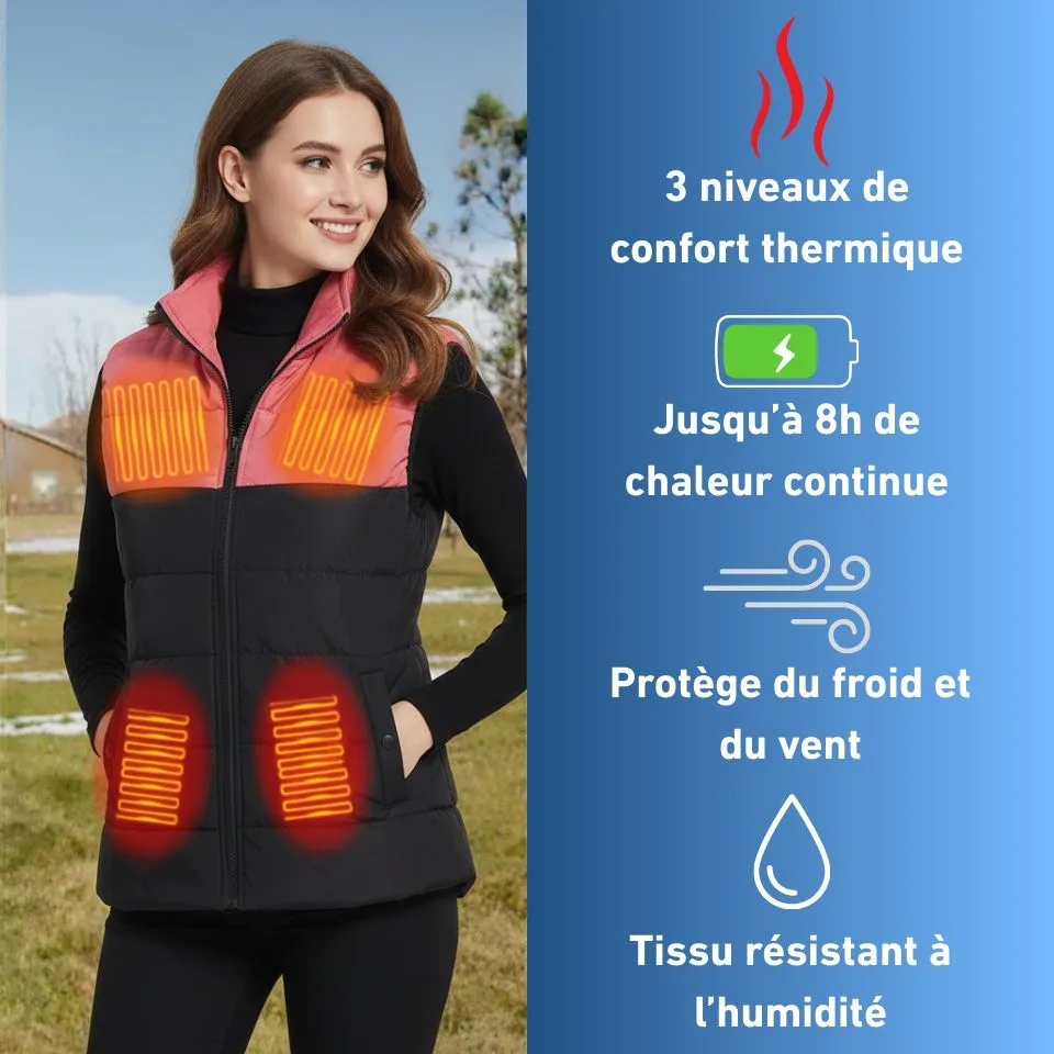 • Veste chauffante sans manches pour femme, idéale pour l’hiver.
